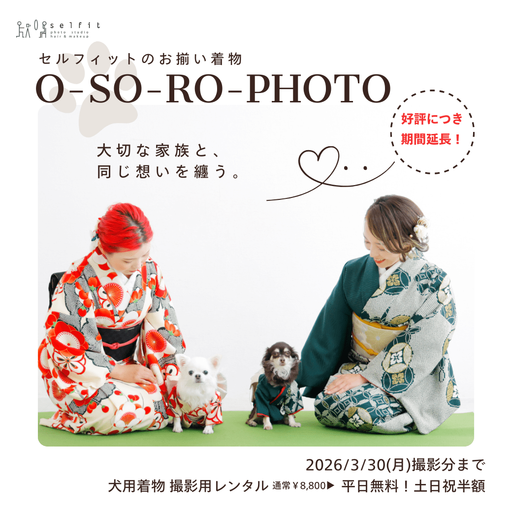 愛犬と一緒に 着物フォト体験!「O-SO-RO PHOTO(おそろフォト)」を体験してきたよ♡@フォトスタジオ セルフィット 大阪梅田店